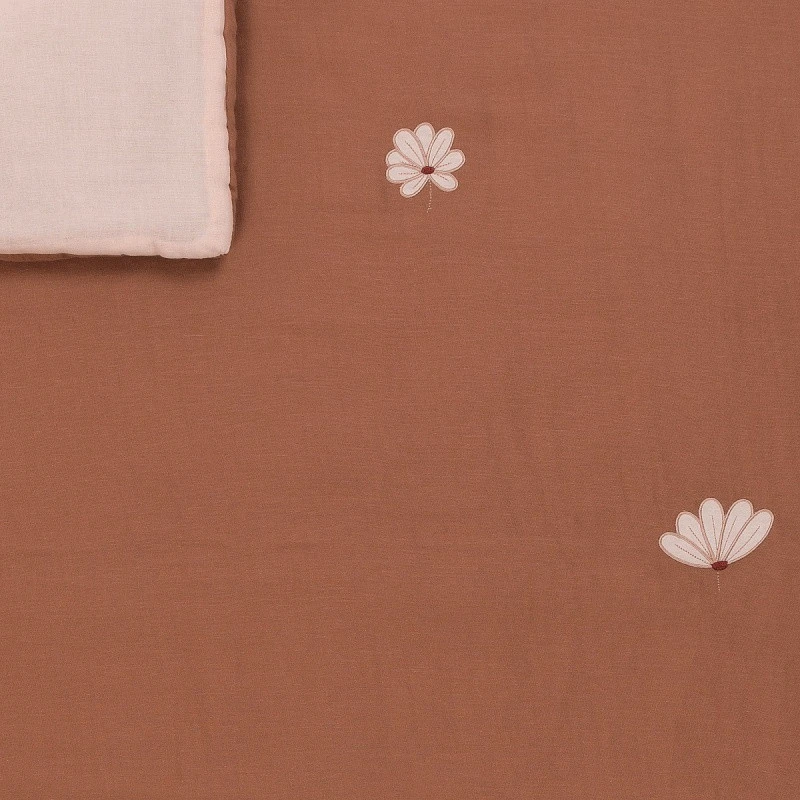 La couverture de lit Nattou Susie et Bonnie est réalisée dans un joli jacquard majoritairement en coton rouille, doublé de rose pâle. Une jolie combinaison de couleurs douces et paisibles !