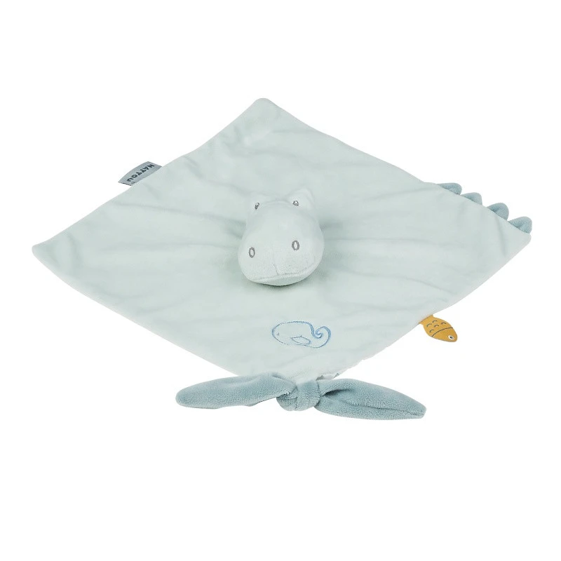 - Doudou souple, plat et carré, facile à tenir par un tout-petit.
