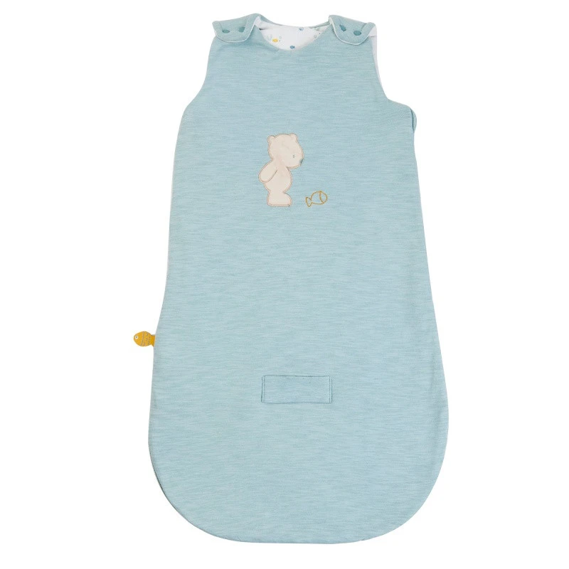 Cette jolie gigoteuse est, en effet, réalisée en jersey chiné bleu extra-doux, et elle possède un indice de chaleur TOG 2, idéal pour les températures de chambre entre 16 et 19 °C.