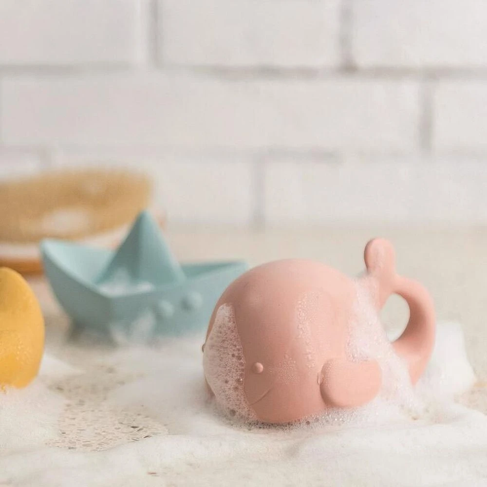 Le Baleine caoutchouc rose de chez Nattou. Cette adorable balaine de bain est idéal pour divertir et amuser votre enfant lors du rituel du bain.
