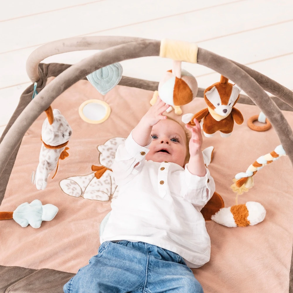 Le tapis avec ses multiples activités différentes invitent au jeu et à l’exploration (papier crissant, hochets, miroirs, …). Votre bébé peut ainsi se créer un petit monde à lui. Toutes les activités invitent au développement et à l’éveil de bébé.