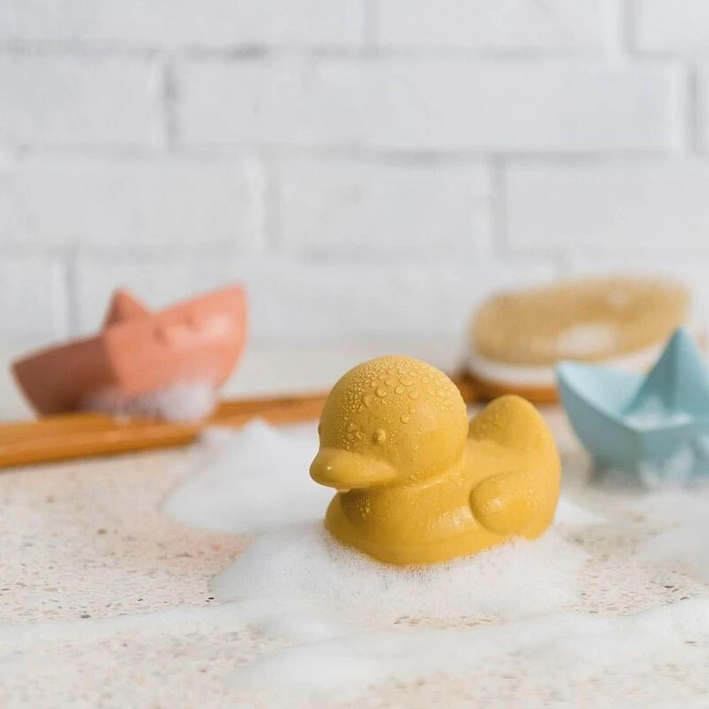 Le Canard caoutchouc vert sauge de chez Nattou. Cet adorable canard de bain est idéal pour divertir et amuser votre enfant lors du rituel du bain.