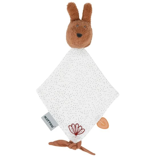 - Ce doudou plat avec ses petites étiquettes et sa nouette est parfaitement adapté aux petites mains de bébé.