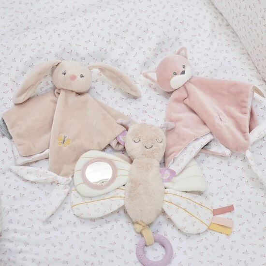 - La matière particulièrement douce et les différentes textures encourageront le sens du toucher et de développement de votre bébé.