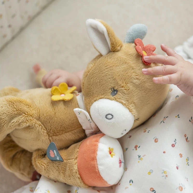 Entretien : lavage en machine à 30 °C – nous vous recommandons de laver la peluche avant de la donner à votre bébé.