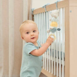 Ce jouet amusant invite votre bébé à observer, à attraper, à manipuler… Autant d’activités qui participent au développement de ses sens, de sa motricité, de sa dextérité et de sa coordination œil-main.