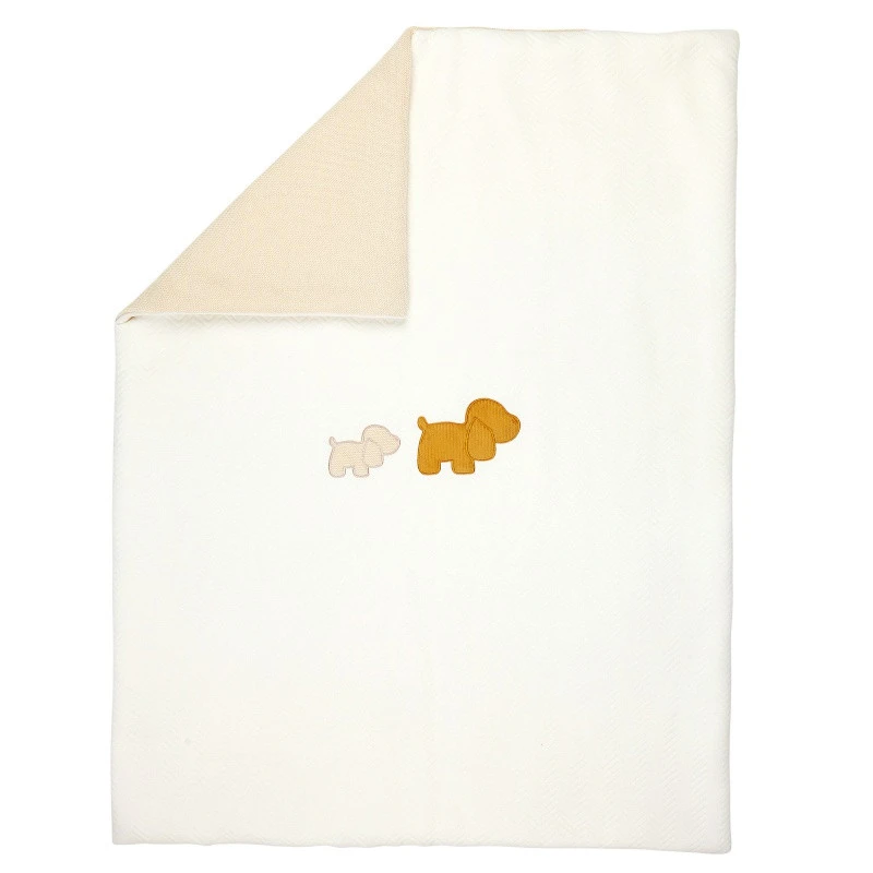 Cette couverture Charlie de Nattou est réalisée en coton caramel et beige, extrêmement doux, avec en décoration au centre deux adorables chiens. Il s’agit de Charlie le petit chien accompagné de son compagnon de jeux. Ils sont les héros de la collection composée d’objets pour enjoliver la chambre de votre enfant, pour l’accompagner en balade, pour l’éveiller et prendre soin de lui.